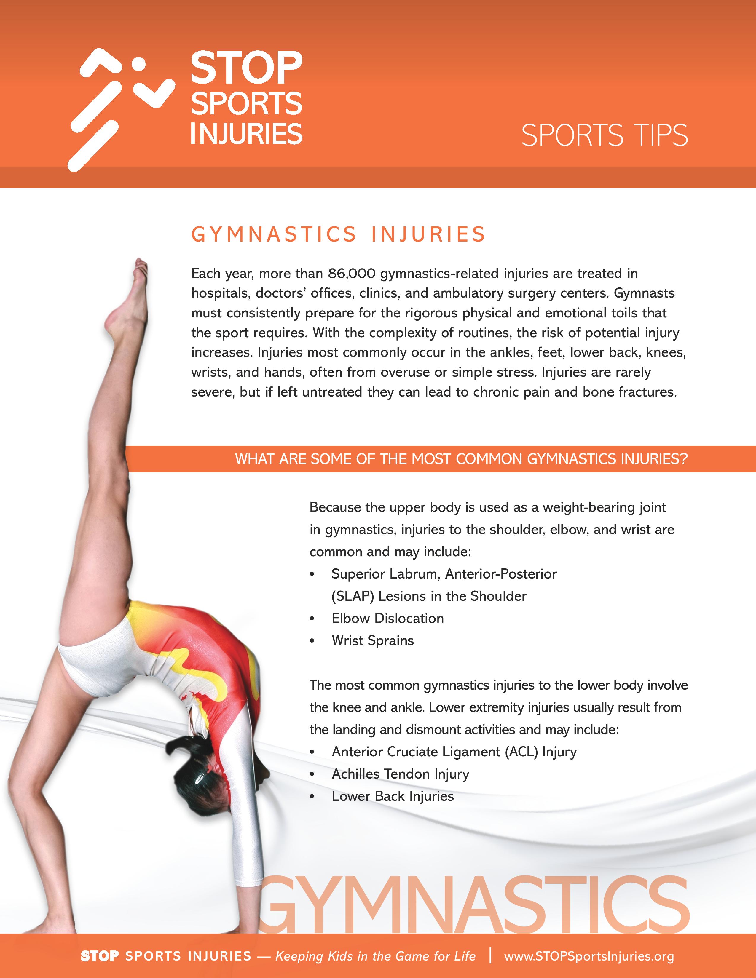 Injury Prevention Tip of the Month: Gymnastics Oct 16, 2017 This month we are sharing injury prevention tips for the Sport of Gymnastics. Enjoy…